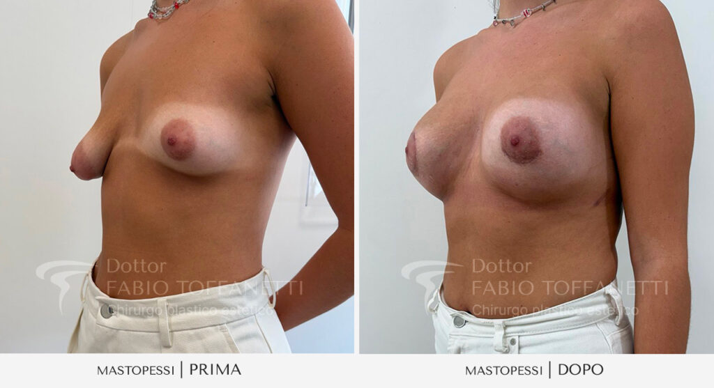 Nelle prime 24 ore dopo l’intervento di mastopessi, la paziente dovrà mantenere una medicazione moderatamente compressiva. Non si utilizzano drenaggi. Le suture verranno rimosse tra i 7 e i 14 giorni. Permarrà un lieve gonfiore per circa 1-2 settimane. Fondamentale sarà mantenere un reggiseno contenitivo per circa un mese. Il ritorno a una normale attività lavorativa sarà possibile dopo circa 7-10 giorni.
