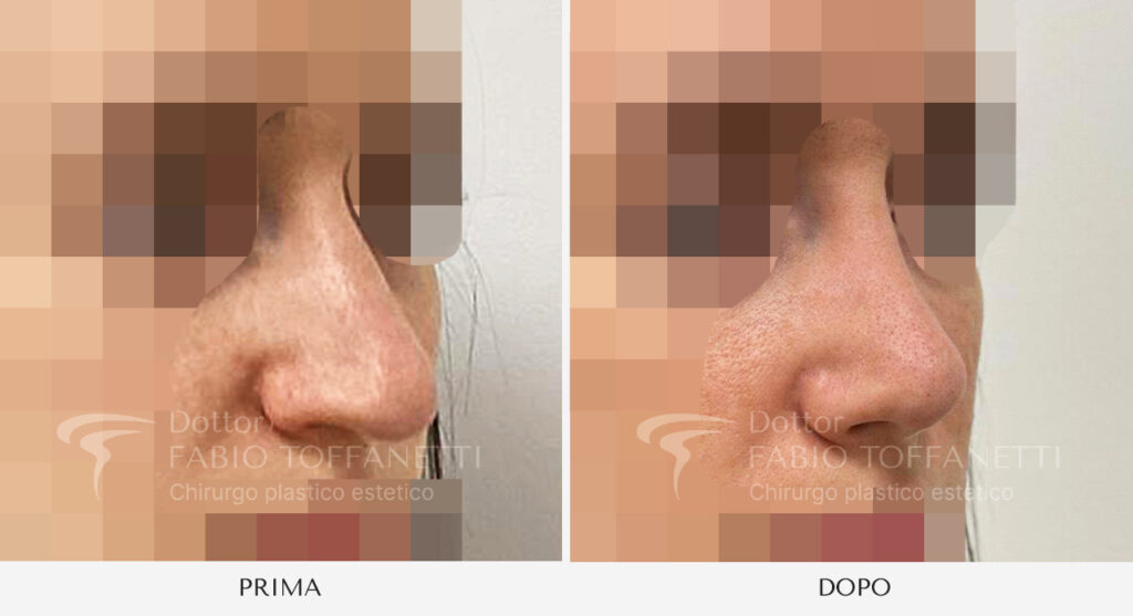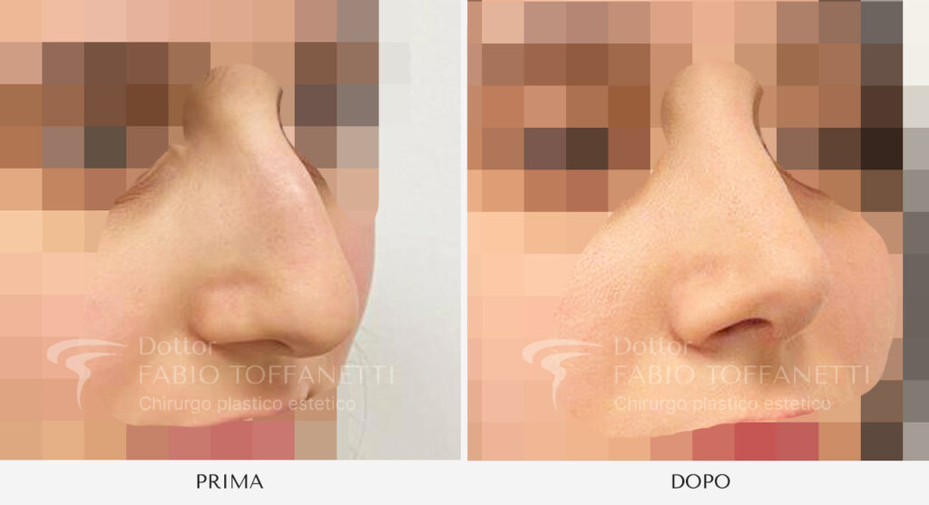 Il gonfiore si riduce fortemente già 7 giorni dopo l’intervento. Settimana dopo settimana, come per tutti gli interventi chirurgici estetici, il nuovo profilo del naso andrà definendosi sempre più.